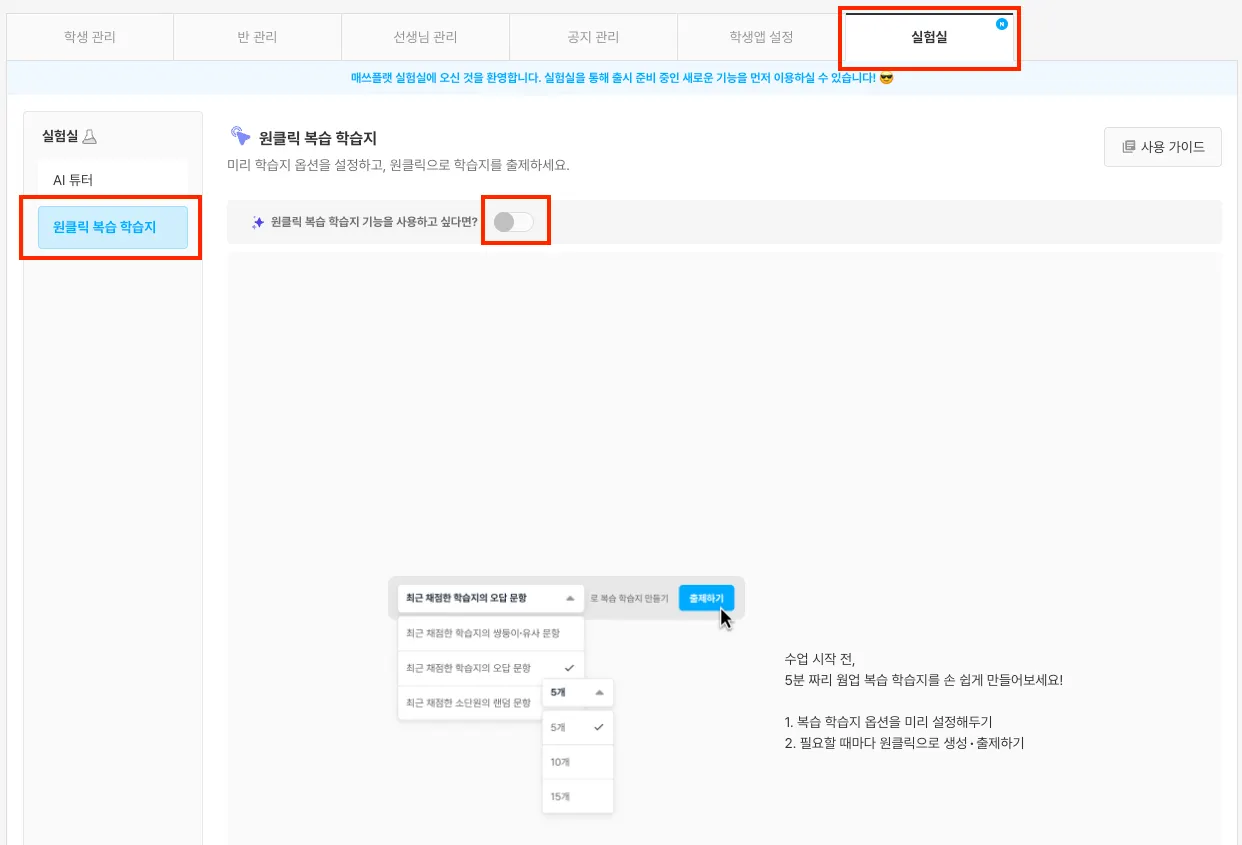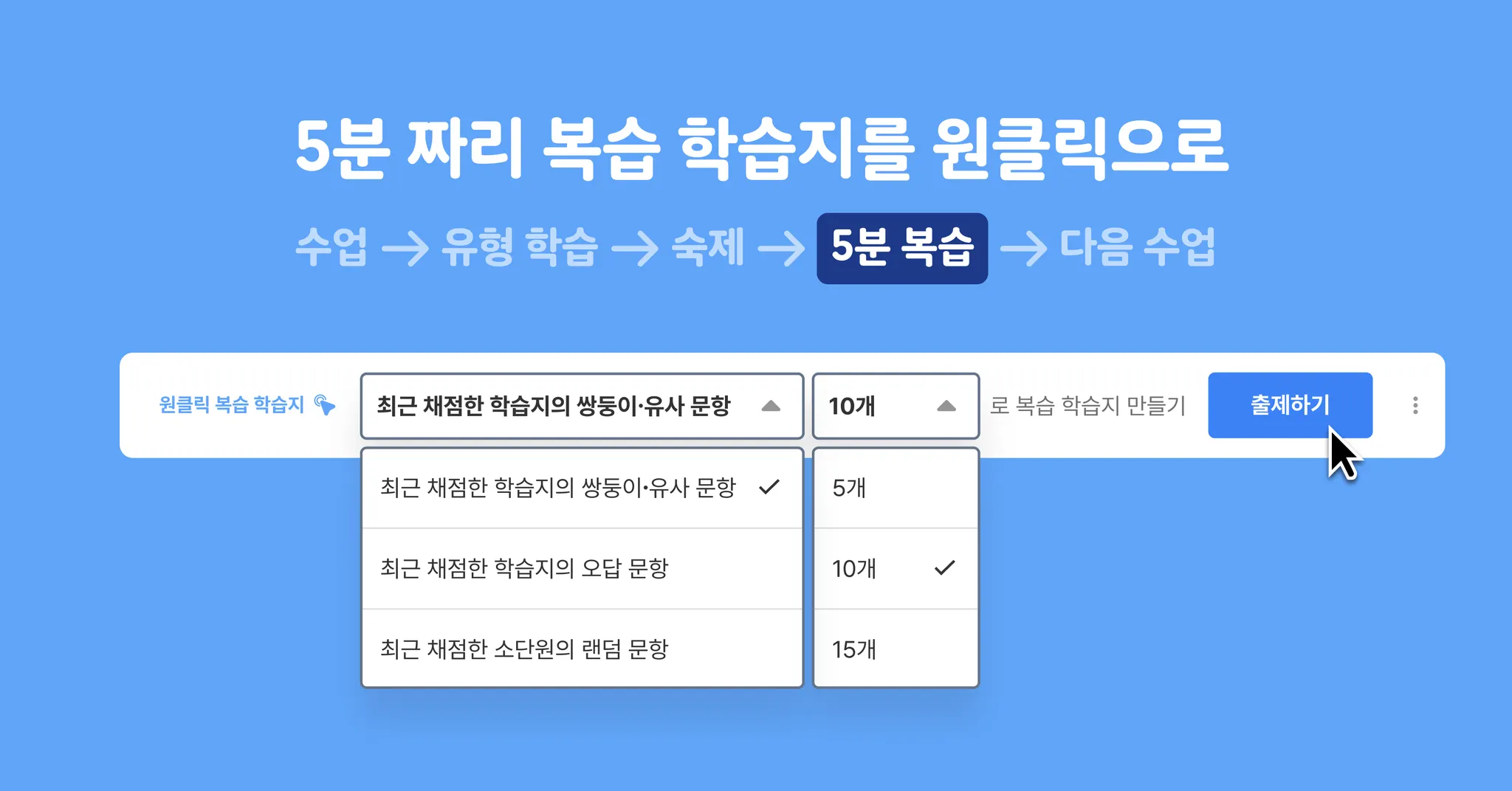 복습 옵션은 선생님들의 needs에 따라, 계속 업데이트 및 고도화 될 예정입니다.