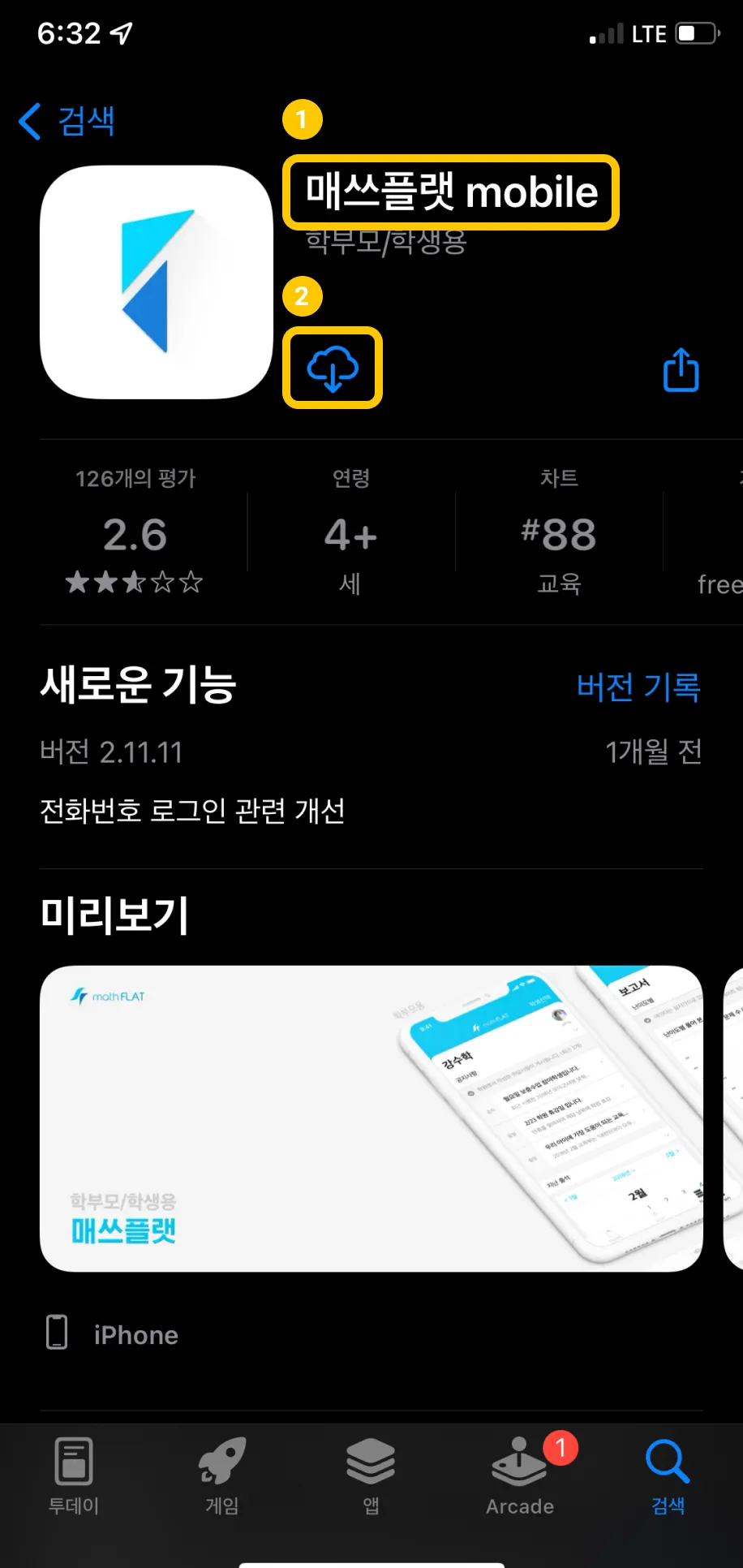 앱스토어에서 매쓰플랫 mobile을 검색합니다.