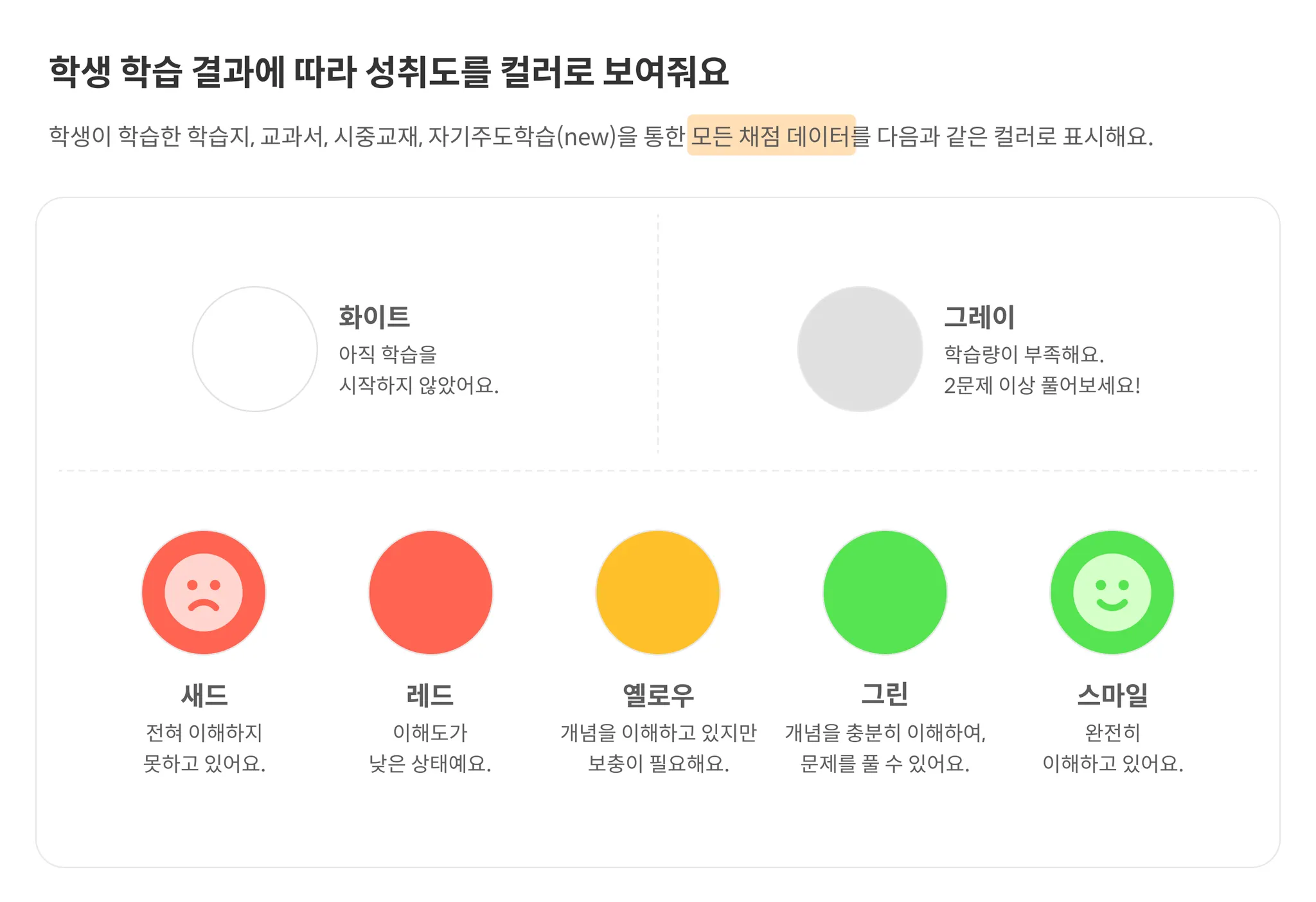 학생의 학습 현황(진도 등)을 한 눈에 파악하기에 용이합니다.