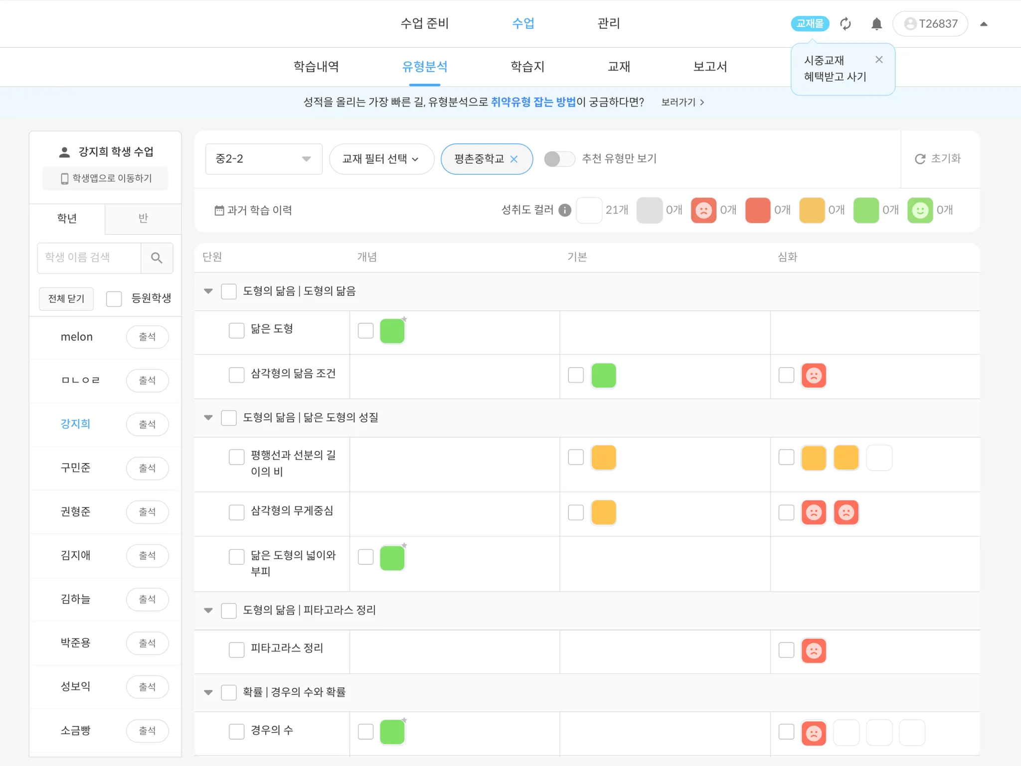성취도 증감 추이를 확인하기에도 좋고, 성적 향상이 뚜렷한 학생에 대해서는 학부모와의 상담에서도 활용하기 좋아요.