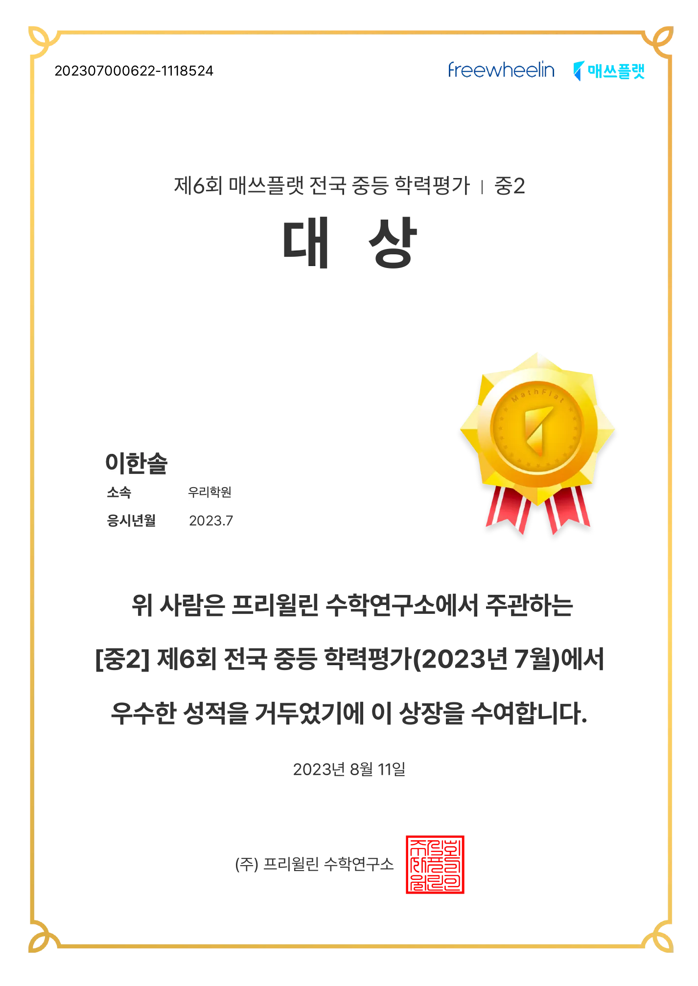 응시한 학생에 대해 다음 결과지와 인증서를 각각 제공합니다.