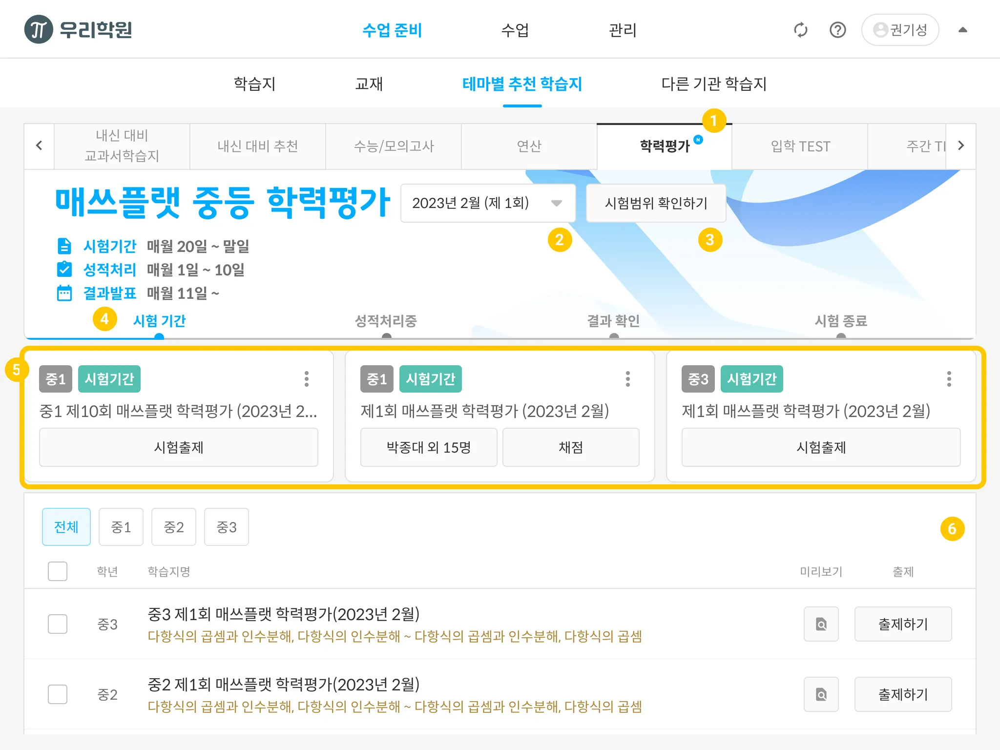 평가 기간이 끝난 회차는 다른 테마별 학습지처럼 출제 후 오답학습이 가능합니다.