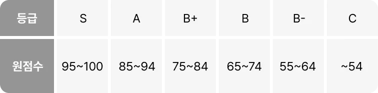 등급 정보: 등급은 다음 원점수를 기준으로 제공됩니다.
