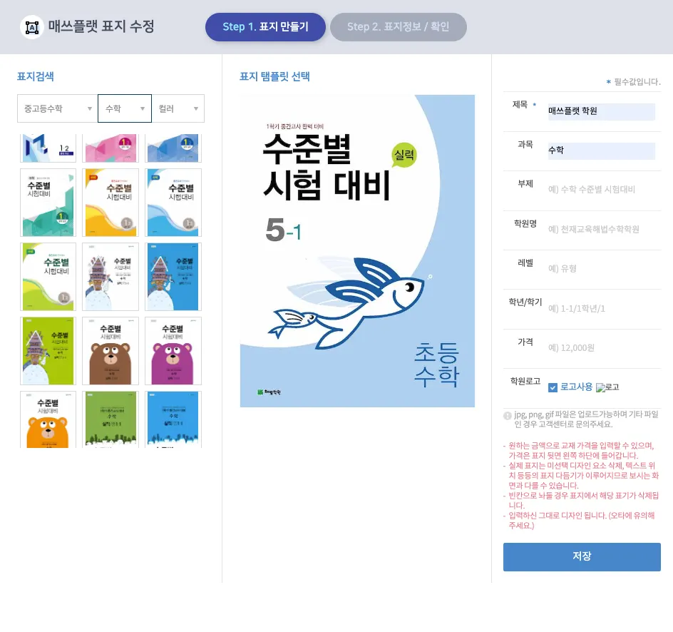 자체 교재를 사용하는 전문성 있는 학원 이미지로 학원 홍보에 도움이 됩니다.
