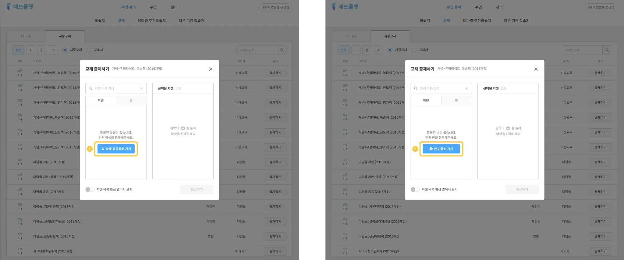 출제된 교재의 1명(출제한 학생수) 버튼을 누르면 출제하기 팝업이 뜹니다.