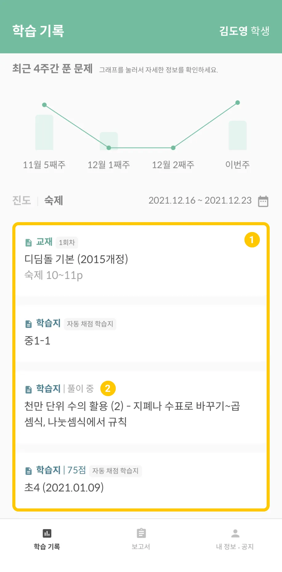 학부모앱 > 학습 기록